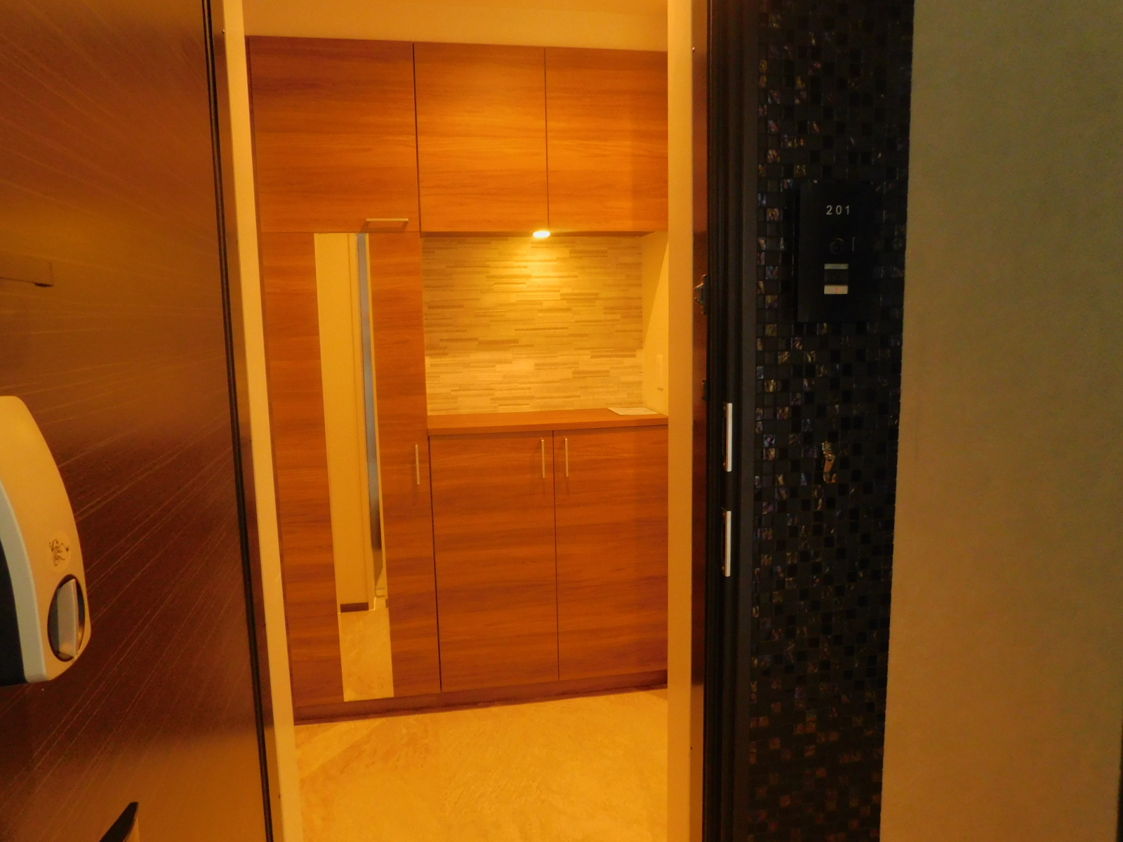 エントランスホールから玄関までの共用部分もエアコン完備のホテル仕様